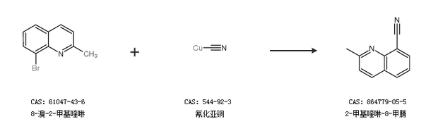 2.通过8-溴-2-甲基喹啉和氰化亚铜合成2-甲基喹啉-8-甲腈