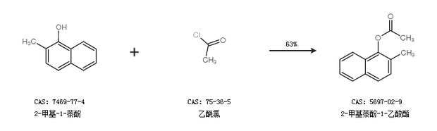 1.通过2-甲基-1-萘酚和乙酰氯合成2-甲基萘酚-1-乙酸酯,收率约63%;