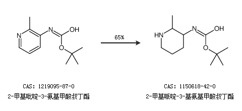 1.通过2-甲基吡啶-3-氨基甲酸叔丁酯合成2-甲基哌啶-3-基氨基甲酸叔丁酯,收率约65%;