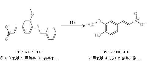 1.通过反-4-苄氧基-3-甲氧基-β-硝基苯乙烯合成2-甲氧基-4-[(e)-2-硝基乙烯基]苯酚,收率约75%;