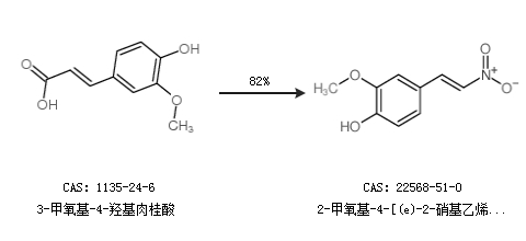 2.通过3-甲氧基-4-羟基肉桂酸合成2-甲氧基-4-[(e)-2-硝基乙烯基]苯酚,收率约82%;