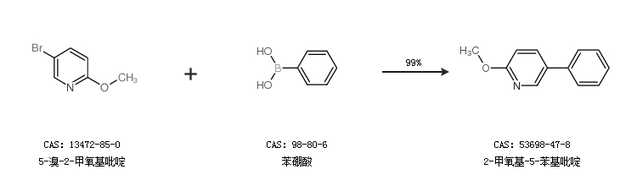 2.通过5-溴-2-甲氧基吡啶和苯硼酸合成2-甲氧基-5-苯基吡啶,收率约99%;