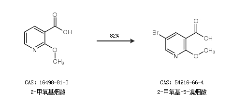 1.通过2-甲氧基烟酸合成2-甲氧基-5-溴烟酸,收率约82%;