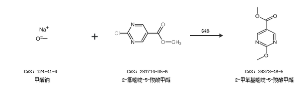 1.通过甲醇钠和2-氯嘧啶-5-羧酸甲酯合成2-甲氧基嘧啶-5-羧酸甲酯,收率约64%;