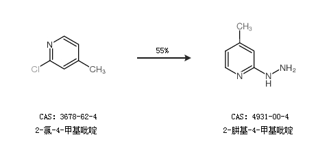 1.通过2-氯-4-甲基吡啶合成2-肼基-4-甲基吡啶,收率约55%;