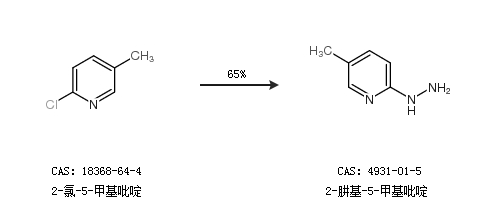 1.通过2-氯-5-甲基吡啶合成2-肼基-5-甲基吡啶,收率约65%;