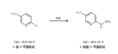 2.通过2-溴-5-甲基吡啶合成2-肼基-5-甲基吡啶,收率约69%;