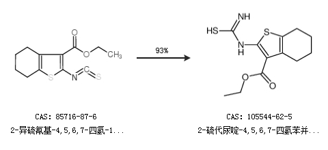 1.通过2-异硫氰基-4,5,6,7-四氢-1-苯并噻吩-3-羧酸乙酯合成2-硫代尿啶-4,5,6,7-四氢苯并[b]噻吩-3-羧酸乙酯,收率约93%;