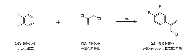 1.通过1,2-二氟苯和一氯代乙酰氯合成2-氯-1-(3,4-二氟苯基)乙酮,收率约99%;