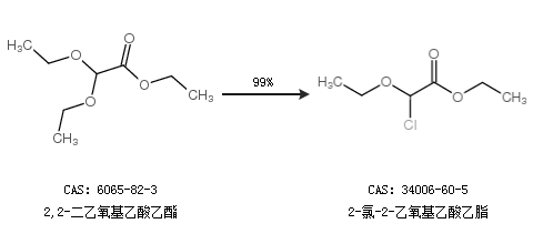 1.通过2,2-二乙氧基乙酸乙酯合成2-氯-2-乙氧基乙酸乙脂,收率约99%;