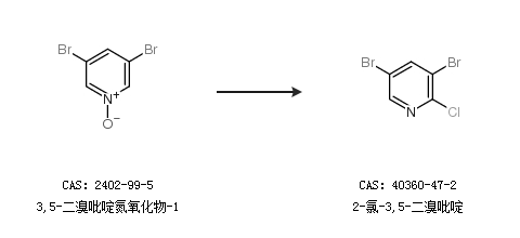2.通过3,5-二溴吡啶氮氧化物-1合成2-氯-3,5-二溴吡啶