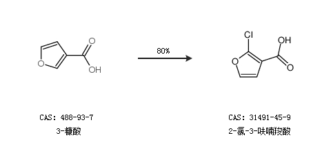 1.通过3-糠酸合成2-氯-3-呋喃羧酸,收率约80%;
