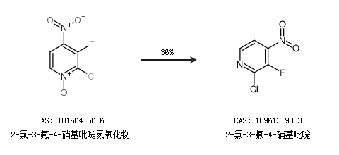 1.通过2-氯-3-氟-4-硝基吡啶氮氧化物合成2-氯-3-氟-4-硝基吡啶,收率约36%;