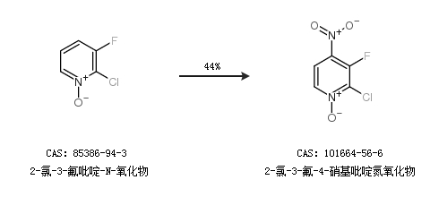 1.通过2-氯-3-氟吡啶-N-氧化物合成2-氯-3-氟-4-硝基吡啶氮氧化物,收率约44%;