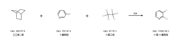 2.通过三乙烯二胺、3-氟吡啶和六氯乙烷合成2-氯-3-氟吡啶,收率约50%;