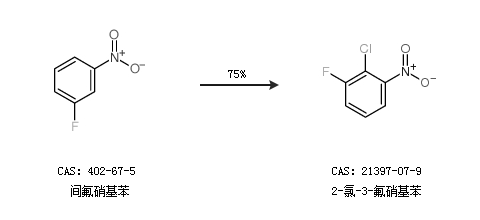 1.通过间氟硝基苯合成2-氯-3-氟硝基苯,收率约75%;
