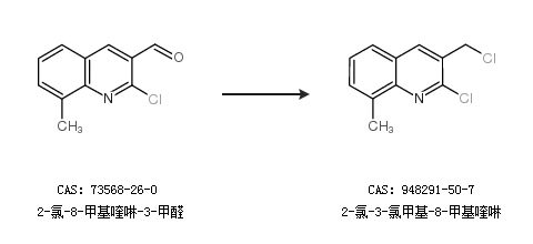 2.通过2-氯-8-甲基喹啉-3-甲醛合成2-氯-3-氯甲基-8-甲基喹啉