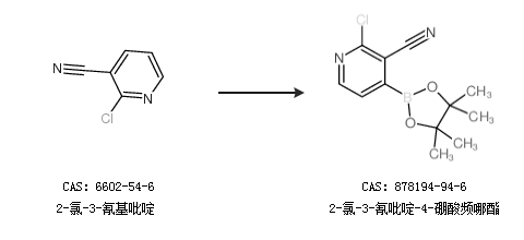2.通过2-氯-3-氰基吡啶合成2-氯-3-氰吡啶-4-硼酸频哪酯