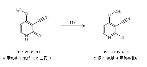 1.通过4-甲氧基-2-氧代-1,2-二氢-3-氰基吡啶合成2-氯-3-氰基-4-甲氧基吡啶,收率约75%;