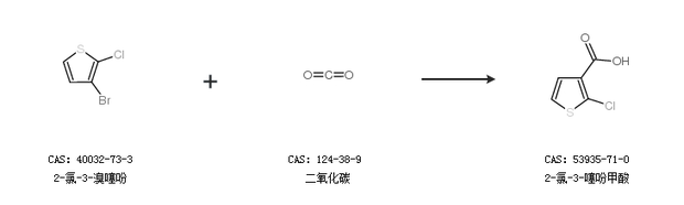 2.通过2-氯-3-溴噻吩和二氧化碳合成2-氯-3-噻吩甲酸