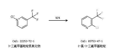 1.通过3-三氟甲基吡啶氮氧化物合成2-氯-3-三氟甲基吡啶,收率约49%;