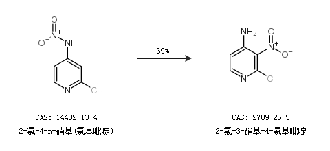 1.通过2-氯-4-n-硝基(氨基吡啶)合成2-氯-3-硝基-4-氨基吡啶,收率约69%;