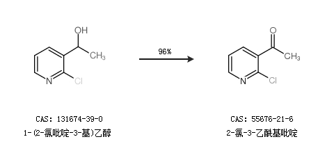 1.通过1-(2-氯吡啶-3-基)乙醇合成2-氯-3-乙酰基吡啶,收率约96%;