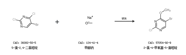1.通过5-溴-2,4-二氯嘧啶和甲醇钠合成2-氯-4-甲氧基-5-溴嘧啶,收率约95%;