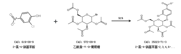 1.通过2-氯-4-硝基苯酚和乙酰溴-α-D-葡萄糖合成2-氯-4-硝基苯基-2,3,4,6-四邻乙酰基-beta-d-吡喃葡萄糖苷,收率约91%;