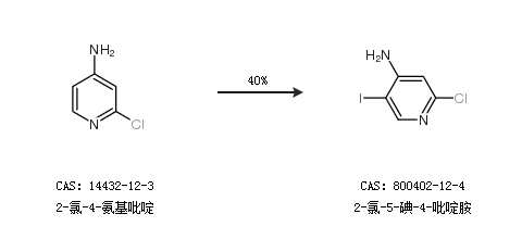 1.通过2-氯-4-氨基吡啶合成2-氯-5-碘-4-吡啶胺,收率约42%;
