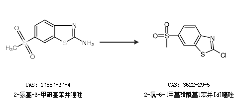 1.通过2-氨基-6-甲砜基苯并噻唑合成2-氯-6-(甲基磺酰基)苯并[d]噻唑