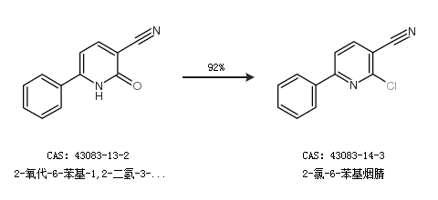1.通过2-氧代-6-苯基-1,2-二氢-3-吡啶甲腈合成2-氯-6-苯基烟腈,收率约92%;