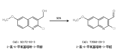 2.通过2-氯-6-甲氧基喹啉-3-甲醇合成2-氯-6-甲氧基喹啉-3-甲醛,收率约90%;