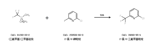 1.通过(三氟甲基)三甲基硅烷和2-氯-6-碘吡啶合成2-氯-6-三氟甲基吡啶,收率约59%;