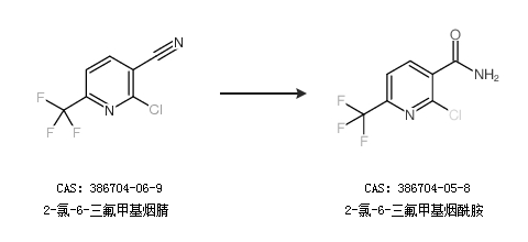 1.通过2-氯-6-三氟甲基烟腈合成2-氯-6-三氟甲基烟酰胺