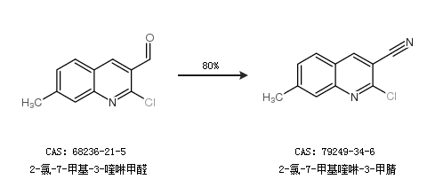 1.通过2-氯-7-甲基-3-喹啉甲醛合成2-氯-7-甲基喹啉-3-甲腈,收率约80%;