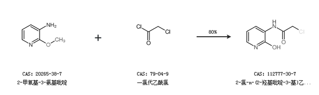 1.通过2-甲氧基-3-氨基吡啶和一氯代乙酰氯合成2-氯-n-(2-羟基吡啶-3-基)乙酰胺,收率约80%;