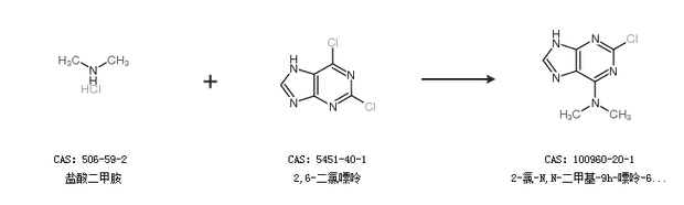 1.通过盐酸二甲胺和2,6-二氯嘌呤合成2-氯-N,N-二甲基-9h-嘌呤-6-胺