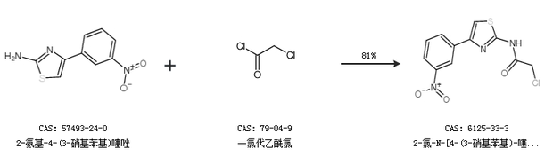 1.通过2-氨基-4-(3-硝基苯基)噻唑和一氯代乙酰氯合成2-氯-N-[4-(3-硝基苯基)-噻唑-2-基]-乙酰胺,收率约81%;