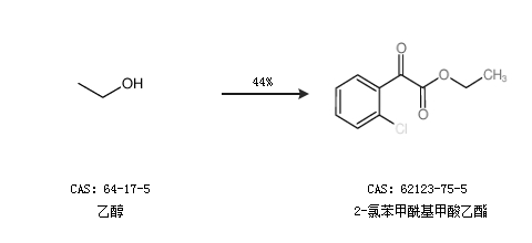 1.通过乙醇合成2-氯苯甲酰基甲酸乙酯,收率约44%;