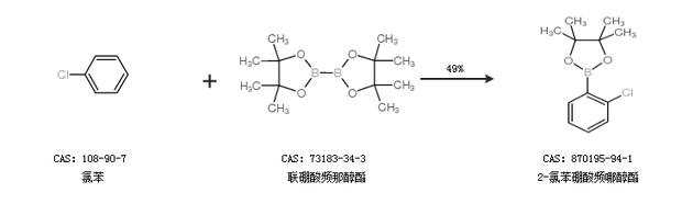 2.通过氯苯和联硼酸频那醇酯合成2-氯苯硼酸频哪醇酯,收率约49%;