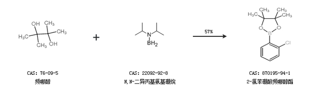 1.通过频哪醇和N,N-二异丙基氨基硼烷合成2-氯苯硼酸频哪醇酯,收率约57%;