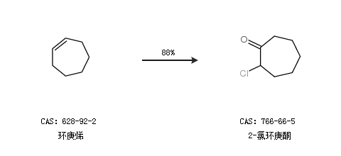 1.通过环庚烯合成2-氯环庚酮,收率约88%;