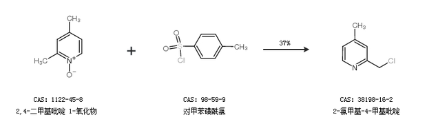 2.通过2,4-二甲基吡啶 1-氧化物和对甲苯磺酰氯合成2-氯甲基-4-甲基吡啶,收率约37%;
