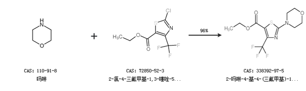 1.通过吗啉和2-氯-4-三氟甲基-1,3-噻唑-5-羧酸乙酯合成2-吗啉-4-基-4-(三氟甲基)-1,3-噻唑-5-羧酸乙酯,收率约96%;