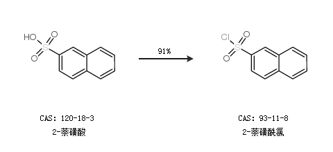 2.通过2-萘磺酸合成2-萘磺酰氯,收率约91%;