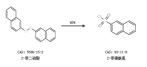 1.通过2-萘二硫醚合成2-萘磺酰氯,收率约98%;