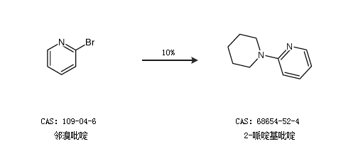 2.通过邻溴吡啶合成2-哌啶基吡啶,收率约10%;