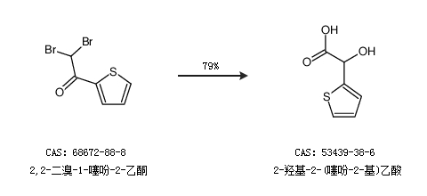 1.通过2,2-二溴-1-噻吩-2-乙酮合成2-羟基-2-(噻吩-2-基)乙酸,收率约79%;