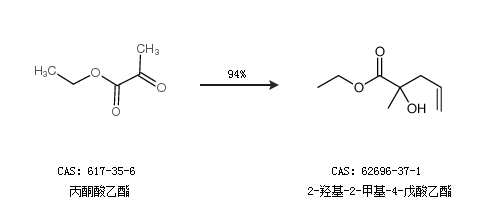 2.通过丙酮酸乙酯和3-溴丙烯合成2-羟基-2-甲基-4-戊酸乙酯,收率约90%;